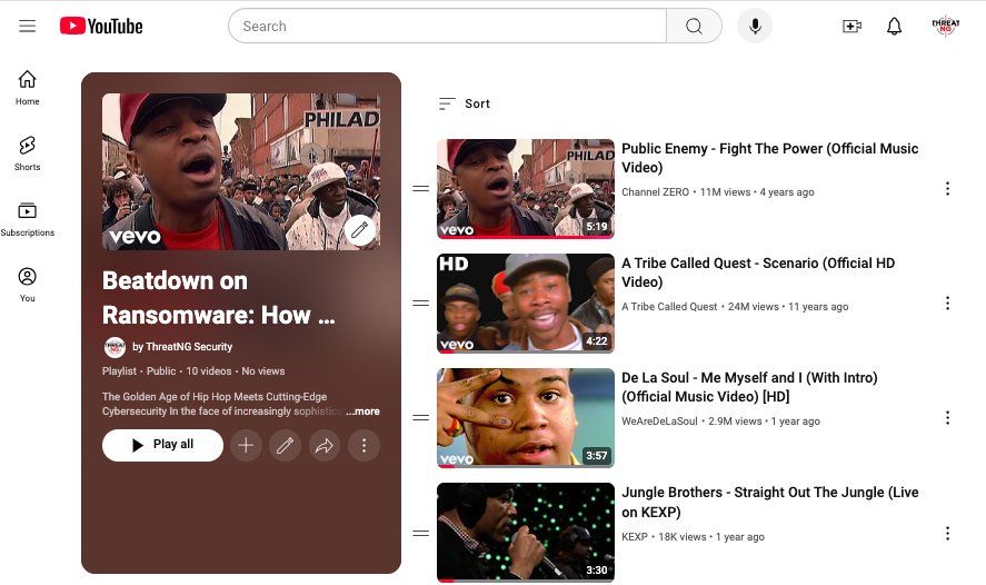 ThreatNG has partnered with DJ Un-G of Riding Mower Records to create a playlist inspired by the article “ThreatNG's Expanded Ransomware Monitoring: A Game-Changer in Proactive Cybersecurity through EASM, Digital Risk Protection, and Security Ratings.” Featuring iconic Golden Age Hip-Hop groups like Public Enemy, A Tribe Called Quest, and De La Soul, the playlist reflects the spirit of proactive defense and the power of knowledge in combating cyber threats.
