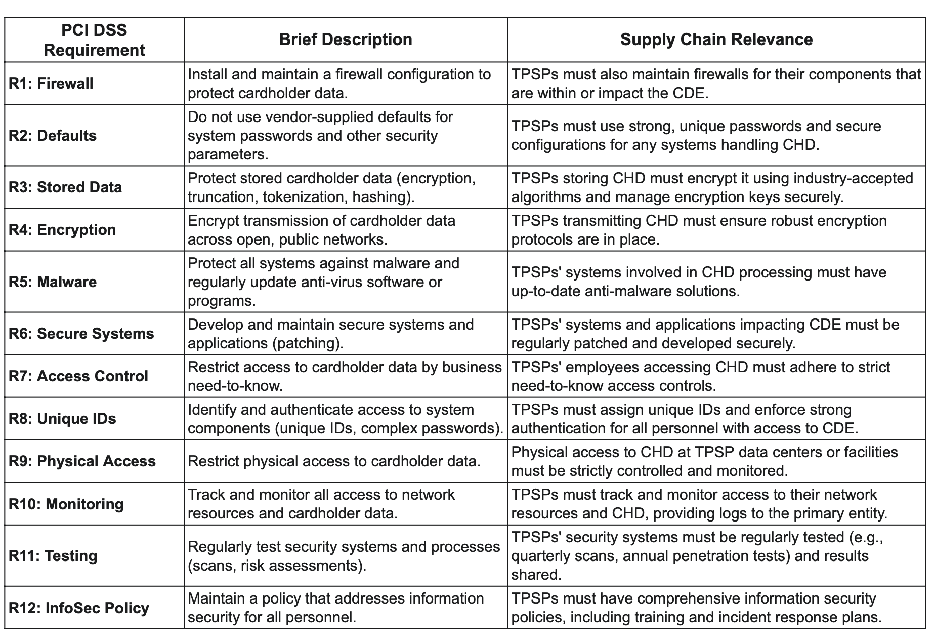 Table: PCI DSS Requirements & Supply Chain Relevance
