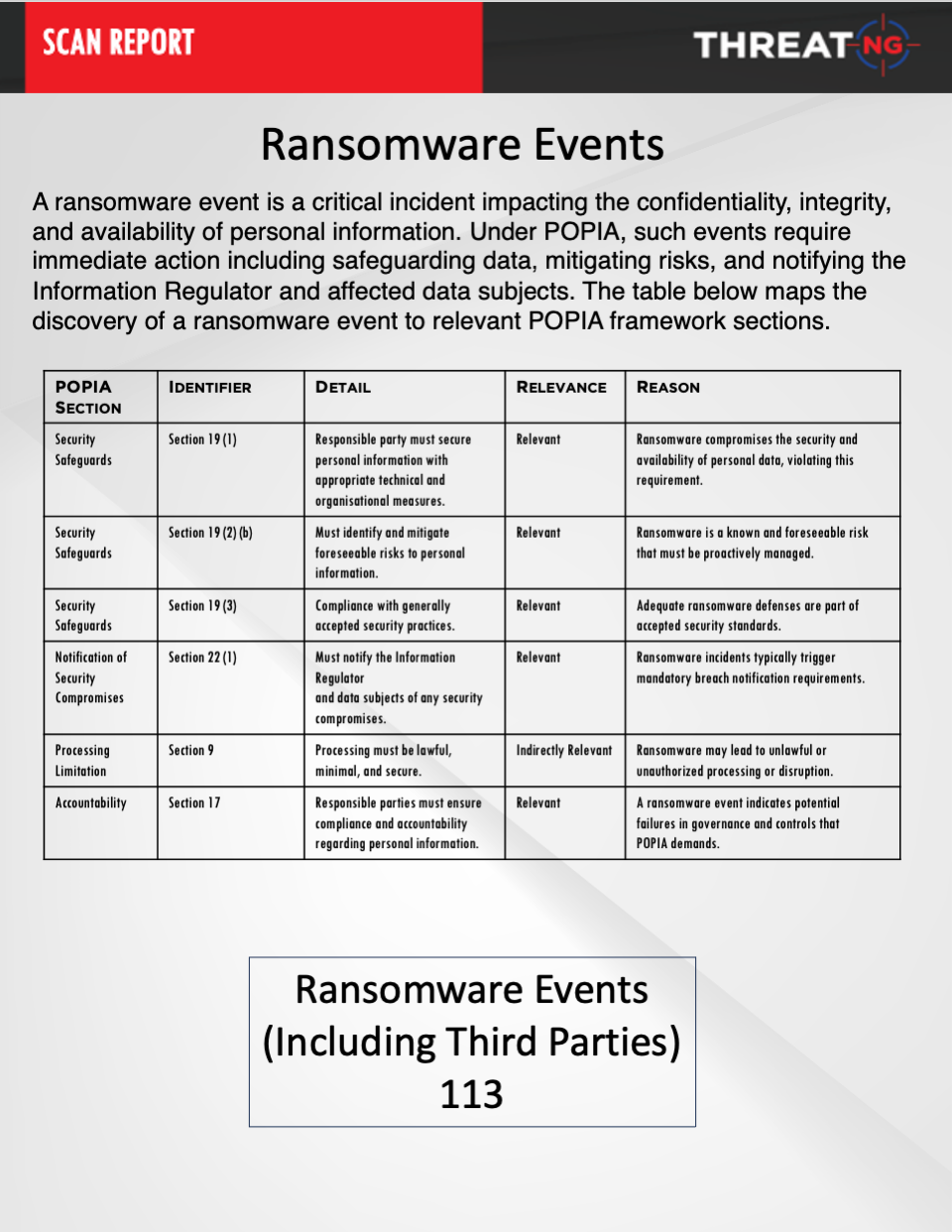 Evidence for Audits: This direct mapping provides auditable evidence, streamlining compliance reporting and external assessments. It helps articulate precisely how ThreatNG identifies and mitigates risks that fall under POPIA's specific requirements.